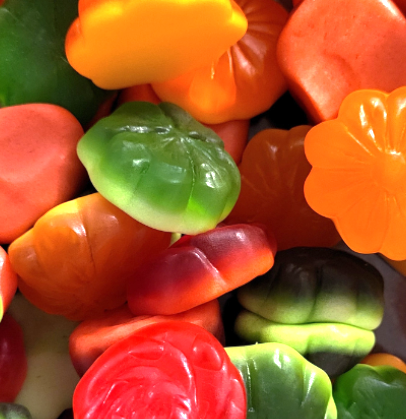 Réf DA 16 - Bonbon en forme de Fleurs mélange de saveur Citron, Fraise et Framboise gélifié, sans Gluten, Bonbon Halal - Sachet de 100 gr.