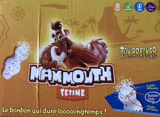 Réf ZE 75 - Bonbon Tétine de Mammouth 4 gouts différents et qui se termine par un Bubble Gum, sans Gluten, Bonbon Halal – La pièce.