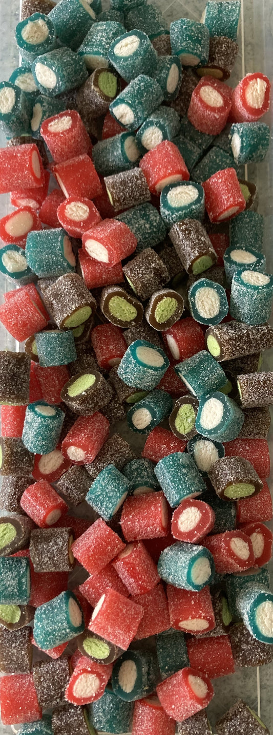 Réf DA 95 - Bonbon aux fruits en forme de Bouchée de Mini câble gout Framboise, Bonbon Halal sachet de 100 gr.
