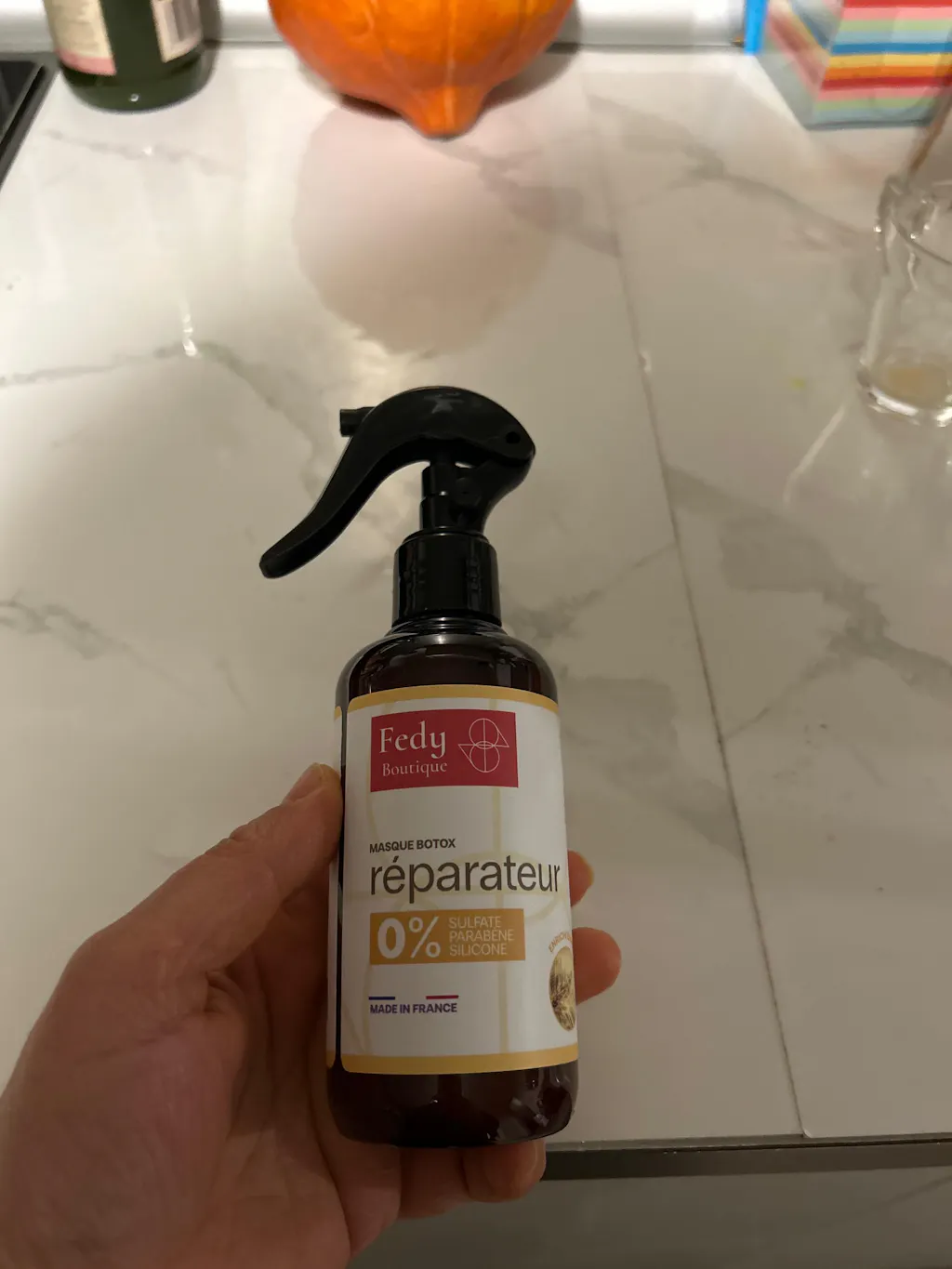 SPRAY FABRICATION FRANCAISE, MASQUE BOTOX CAPILLAIRE SOIN REPARATEUR SANS RINCAGE - SANS SULFATE, SANS PARABENE, SANS SILICONE - 98% des ingrédients sont d'origine naturelle.